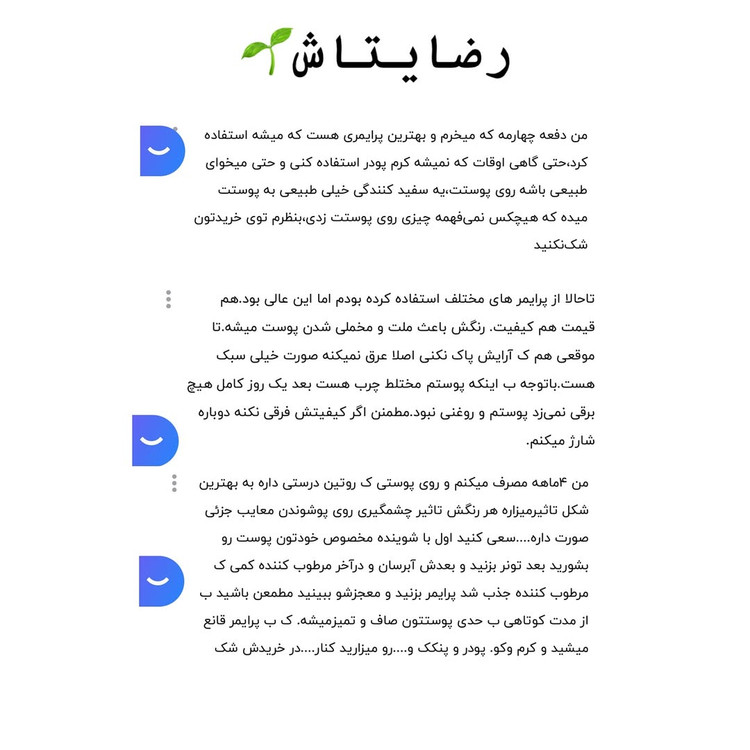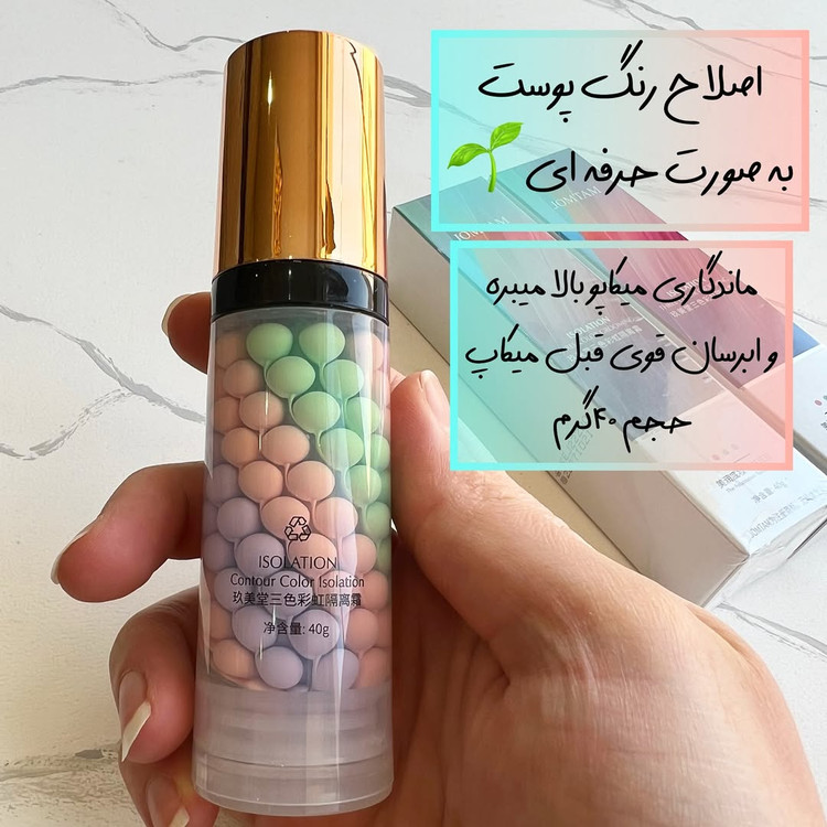پرایمر رنگین کمانی جومتام اگر میکاپ موندگار و بدون نقص میخای باید اصولی ارایش کنی @pariha_shopp یکی از مراحل ارایش کردن ،پرایمر زدنه قیمت:175 راستی ثبت از دایر.ک و سایه رضایتاش اسلاید اخره این محصول با داشتن 3 رنگ عالی بنفش سبز و نارنجی می تواند به تنهایی تمامی نقص های صورت و یا آرایش شما را برطرف سازد. میتونید بدون کرمپودرم ازش استفاده کنید پایه ساز آرایش یا همان پرایمر خودمان می تواند بهترین مکمل برای انواع بی بی کرم یا کرم پودر باشد. پایه ساز رنگی محصولی عالی و فوق العاده برای زیر ساز آرایش است که نه تنها وظیفه آبرسانی به پوست را انجام می دهد بلکه باعث شفافیت و یکدست شدن پوست صورت می شود.پرایمر باعث ماندگاری آرایش شما می شود و با پر کردن منافذ و حفره های ریز پوست از هدر رفتن کرم پودر جلوگیری می کند. اورجینال تنظیم کننده تناژ پوست افزایش دوام آرایش بهترین زیر ساز آرایش و بهترین مکمل برای کرم پودر پر کننده منافذ پوست جلوگیری از چرب شدن و برق افتادن پوست مواد غلیظ و به صرفه آبرسان قوی پوست نحوه استفاده: یکبار از پرایمر پمپ کنید و روی قسمت هایی از صورت که دارای منافذ باز می باشد و یا روی کل صورت پخش و ماساژ دهید تا جذب شود. به مدت 5 الی 10 دقیقه صبر کنید و سپس کرم پودر خود را استفاده کنید. این محصول علاوه بر اینکه یک زیر ساز آرایش عالی محسوب می شود به طور روزانه برای آبرسانی و مرطوب کردن پوست هم می توان استفاده کرد.